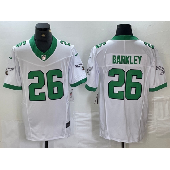 >Men's Philadelphia Eagles #26 Saquon Barkley White 2023 F.U.S.E. Vapor Untouchable Throwback Football Stitched Jersey