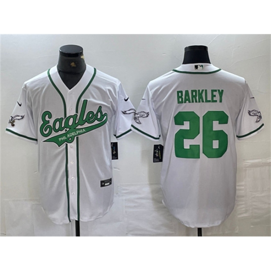 >Men's Philadelphia Eagles #26 Saquon Barkley White Cool Base Baseball Stitched Jerseys