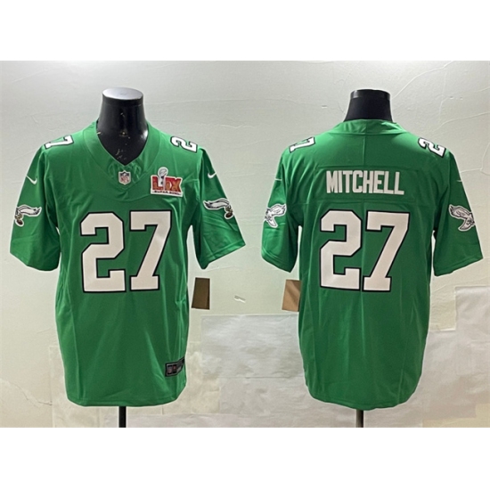 >Men's Philadelphia Eagles #27 Quinyon Mitchell Green 2025 Super Bowl LIX F.U.S.E. Throwback Vapor Untouchable Limited Stitched Football Jersey