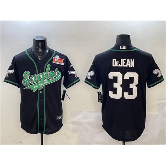 >Men's Philadelphia Eagles #33 Cooper DeJean Black 2025 Super Bowl LIX Cool Base Stitched Baseball Jersey