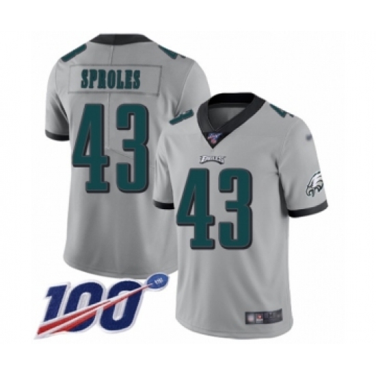 Men's Philadelphia Eagles #43 Darren Sproles Limited Silver Inverted Legend 100th Season Football Jersey