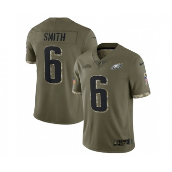 >Men's Philadelphia Eagles #6 DeVonta Smith 2022 Olive Salute To Service Limited Stitched Jersey