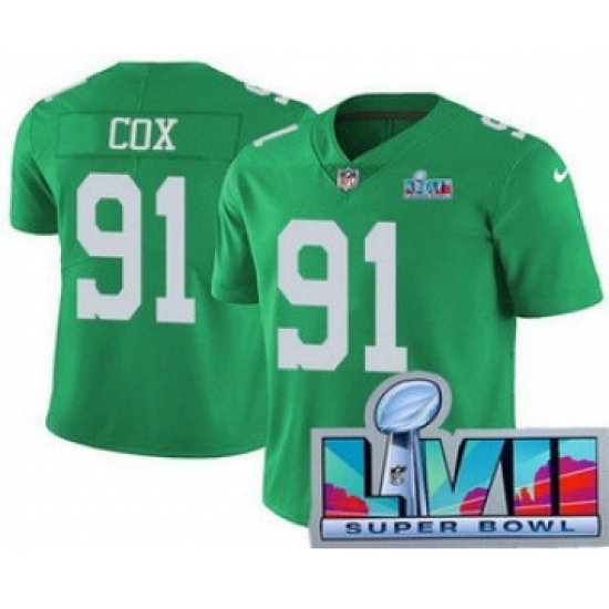Men's Philadelphia Eagles #91 Fletcher Cox Limited Green Rush Super Bowl LVII Vapor Jersey