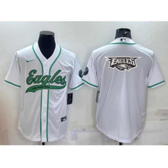 Men's Philadelphia Eagles White Team Big Logo With Patch Cool Base Stitched Baseball Jersey