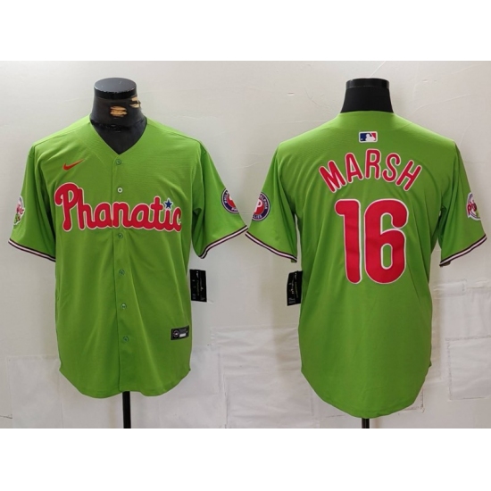 >Men's Philadelphia Phillies #16 Brandon Marsh Green With Stitched Cool Base Nike Jersey