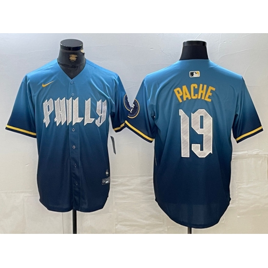 Men's Philadelphia Phillies #19 Cristian Pache Blue 2024 City Connect Limited Stitched Jersey