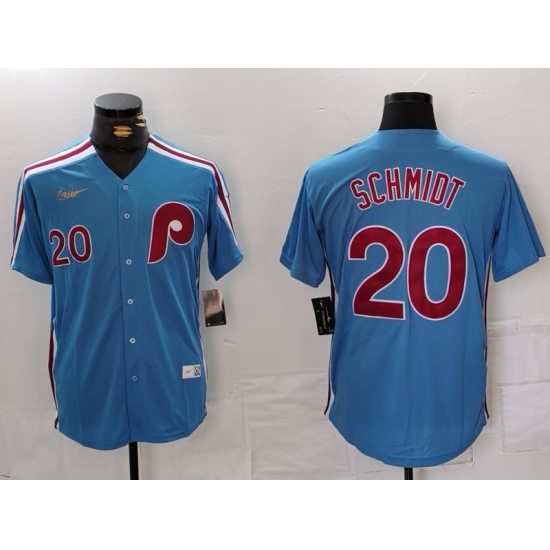 Men's Philadelphia Phillies #20 Mike Schmidt Number Light Blue Cooperstown Cool Base Jersey