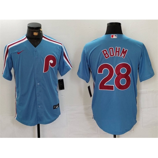 Men's Philadelphia Phillies #28 Alec Bohm Blue Cool Base Stitched Jersey