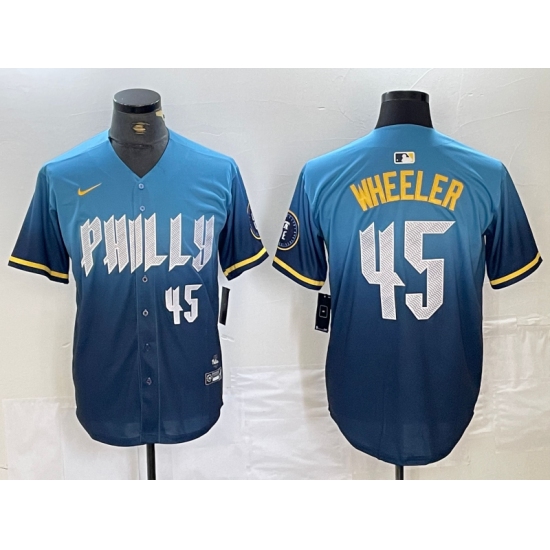 Men's Philadelphia Phillies #45 Zack Wheeler Blue 2024 City Player Number Cool Base Stitched Jersey