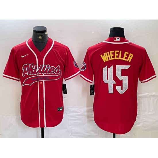 Men's Philadelphia Phillies #45 Zack Wheeler Red Cool Base Stitched Baseball Jersey
