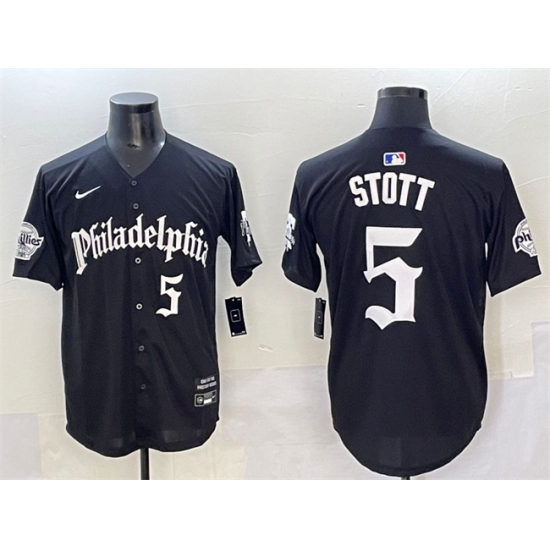 >Men's Philadelphia Phillies #5 Bryson Stott Black Gothic Vapor Limited Stitched Jersey