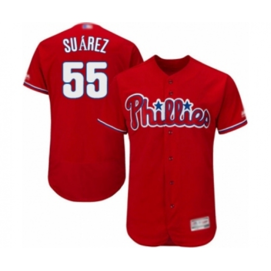 Men's Philadelphia Phillies #55 Ranger Suarez Red Alternate Flex Base Authentic Collection Baseball Player Jersey