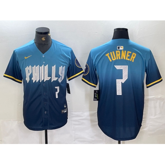 Men's Philadelphia Phillies #7 Trea Turner Number Blue 2024 City Connect Limited Stitched Jersey