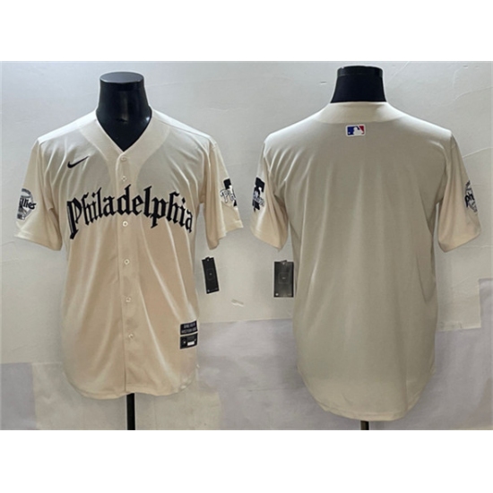 Men's Philadelphia Phillies Blank Cream Gothic Vapor Limited Stitched Jersey