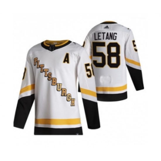 Men's Pittsburgh Penguins #58 Kris Letang White 2020-21 Reverse Retro Alternate Hockey Jersey