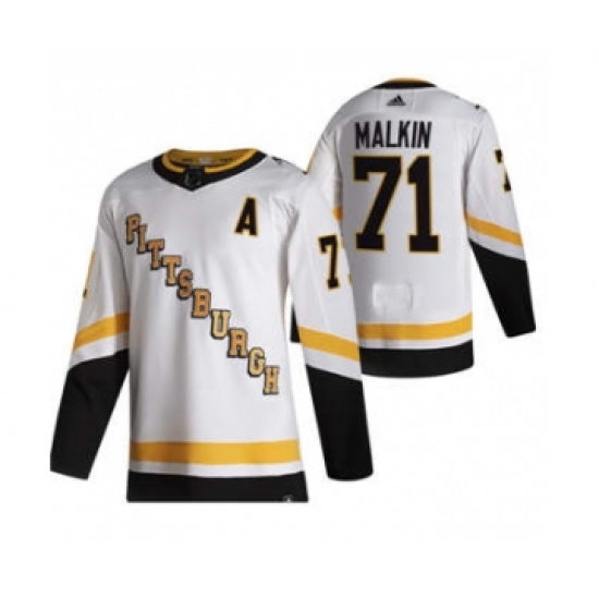 Men's Pittsburgh Penguins #71 Evgeni Malkin White 2020-21 Reverse Retro Alternate Hockey Jersey