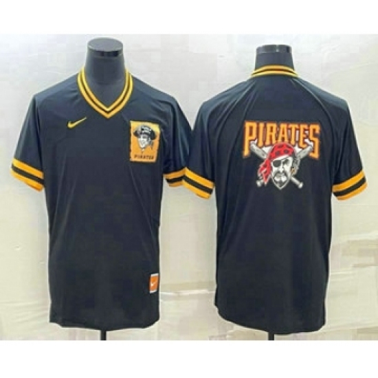 >Men's Pittsburgh Pirates Big Logo Black Nike Cooperstown Collection Legend V Neck Jersey