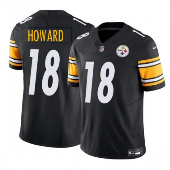 >Men's Pittsburgh Steelers #18 Will Howard Black 2025 Draft F.U.S.E. Vapor Limited Football Stitched Jersey