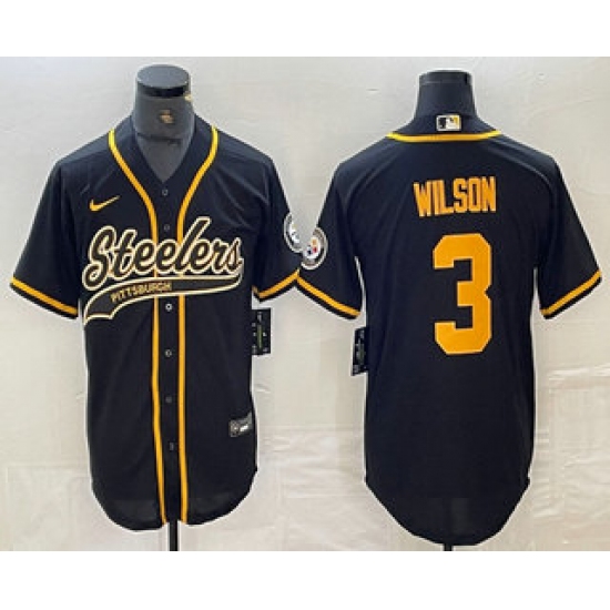 Men's Pittsburgh Steelers #3 Russell Wilson Black With Cool Base Stitched Baseball Jersey