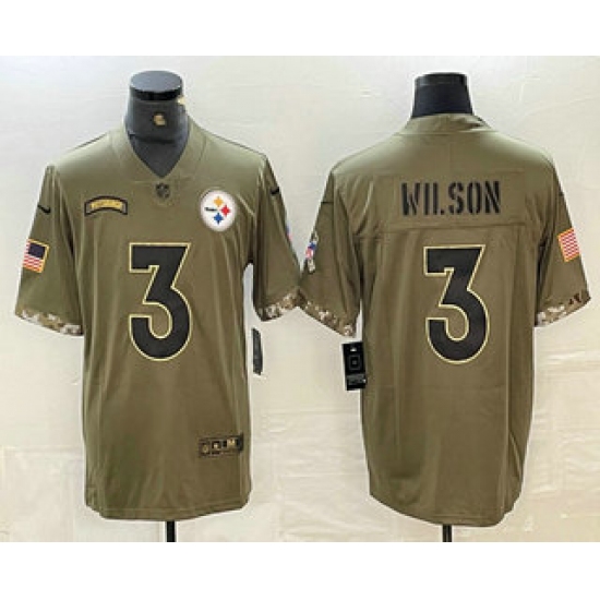 Men's Pittsburgh Steelers #3 Russell Wilson Olive 2022 Salute To Service Limited Stitched Jersey