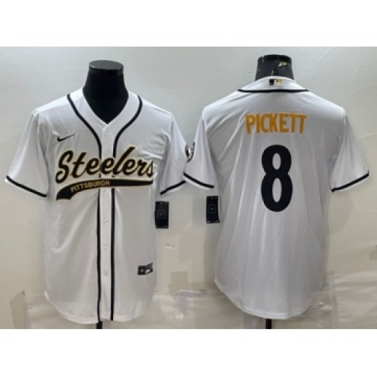 Men's Pittsburgh Steelers #8 Kenny Pickett White Cool Base Stitched Baseball Jersey