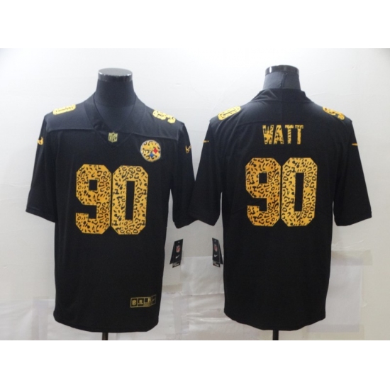 Men's Pittsburgh Steelers #90 T. J. Watt Black Nike Leopard Print Limited Jersey