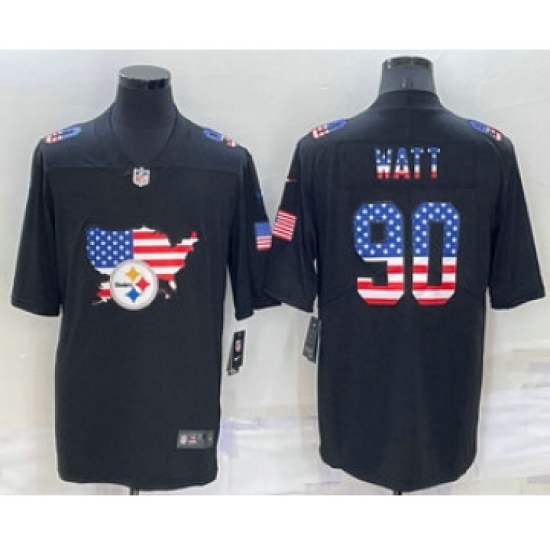 Men's Pittsburgh Steelers #90 TJ Watt 2022 USA Map Fashion Black Color Rush Stitched Nike Limited Jersey