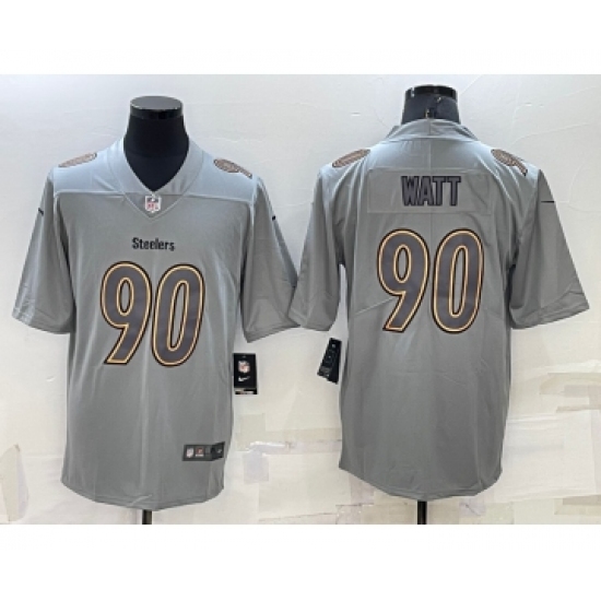 >Men's Pittsburgh Steelers #90 TJ Watt Grey Atmosphere Fashion 2022 Vapor Untouchable Stitched Limited Jersey