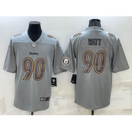 Men's Pittsburgh Steelers #90 TJ Watt LOGO Grey Atmosphere Fashion 2022 Vapor Untouchable Stitched Limited Jersey