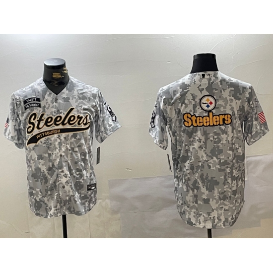 Men's Pittsburgh Steelers Team Logo 2024 Arctic Camo Salute to Service Stitched Baseball Jerseys