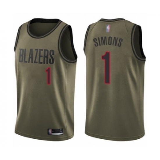 >Men's Portland Trail Blazers #1 Anfernee Simons Swingman Green Salute to Service Basketball Jersey