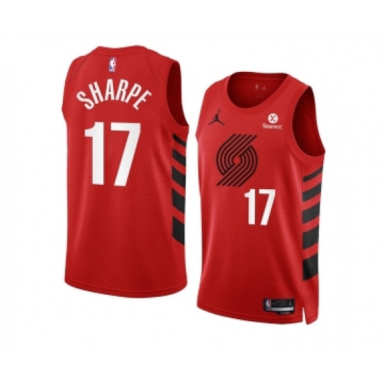 >Men's Portland Trail Blazers #17 Shaedon Sharpe 2022-23 Red Statement Edition Swingman Stitched Basketball Jersey