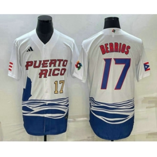 Men's Puerto Rico Baseball #17 Jose Berrios 2023 White World Baseball Classic Stitched Jersey