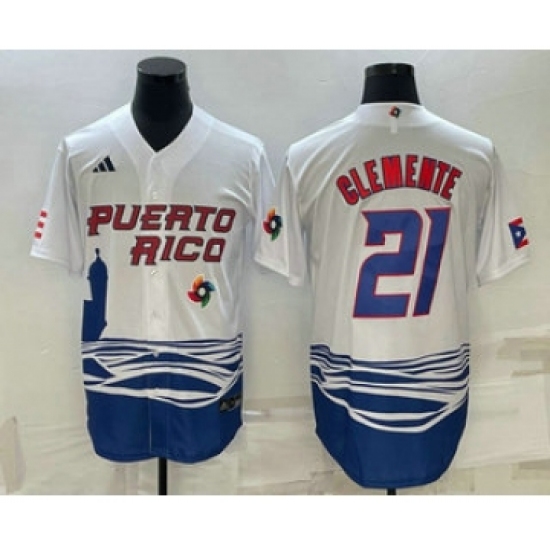 Men's Puerto Rico Baseball #21 Roberto Clemente 2023 White World Baseball Classic Stitched Jerseys