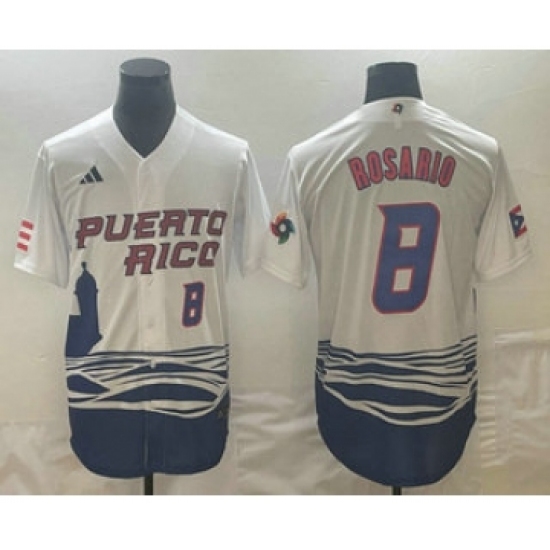Men's Puerto Rico Baseball #8 Eddie Rosario Number 2023 White World Classic Stitched Jerseys