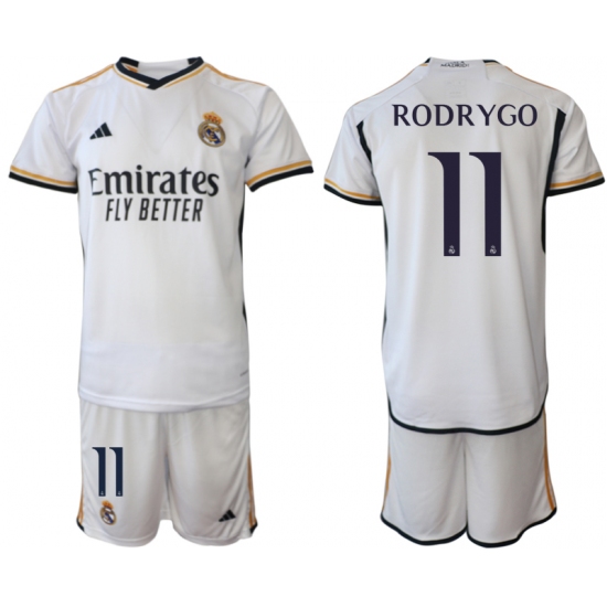 Men's Real Madrid #11 Rodrygo 2023-24 White Home Soccer Jersey