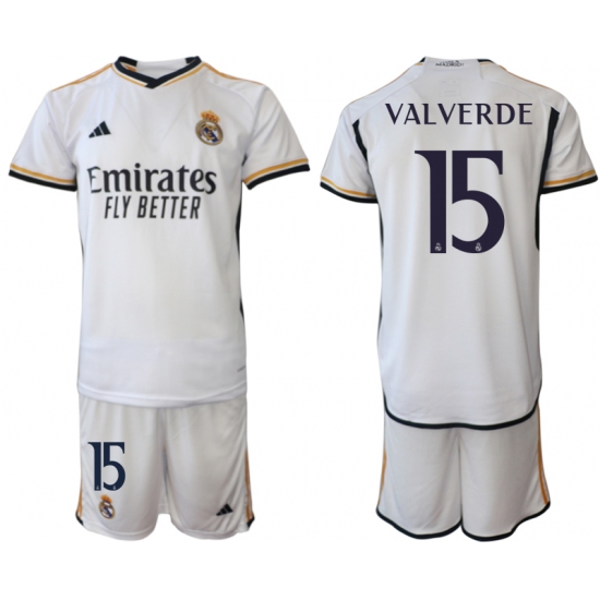 Men's Real Madrid #15 Valverde 2023-24 White Home Soccer Jersey