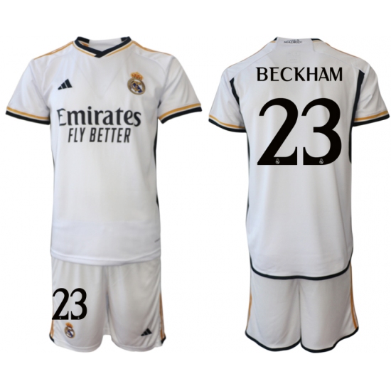 Men's Real Madrid #23 Beckham 2023-24 White Home Soccer Jersey