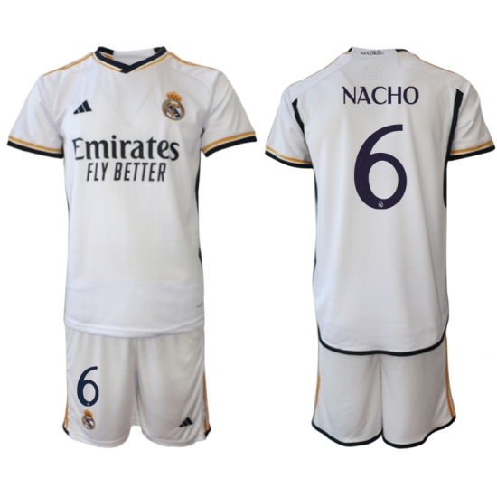 >Men's Real Madrid #6 Nacho 2023-24 White Home Soccer Jersey