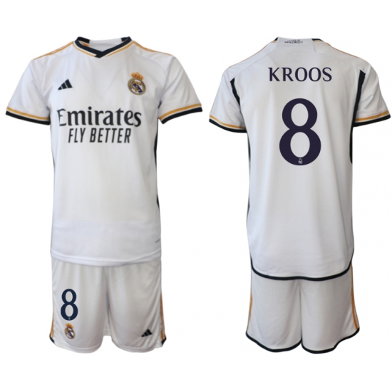 >Men's Real Madrid #8 Kroos 2023-24 White Home Soccer Jersey