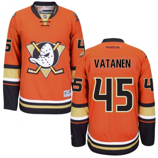 Home>NHL>Anaheim Ducks>Sami Vatanen>Men's Reebok Anaheim Ducks #45 Sami Vatanen Authentic Orange Third NHL Jersey