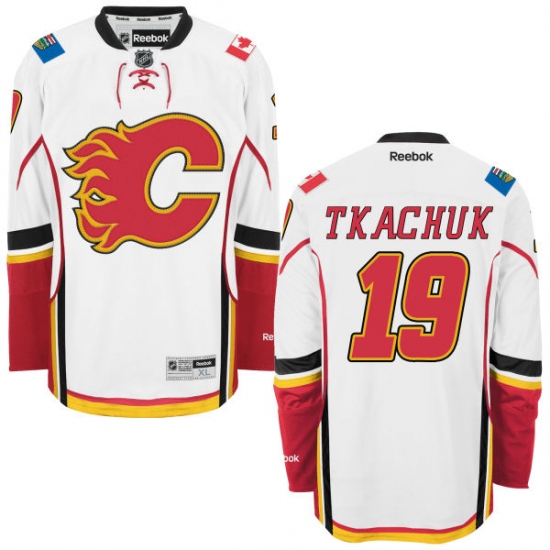 Men's Reebok Calgary Flames #19 Matthew Tkachuk Authentic White Away NHL Jersey