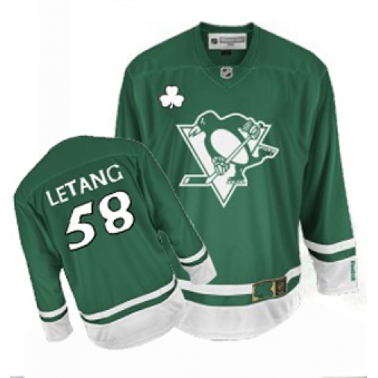Home>NHL>Pittsburgh Penguins>Kris Letang>Men's Reebok Pittsburgh Penguins #58 Kris Letang Premier Green St Patty's Day NHL Jersey