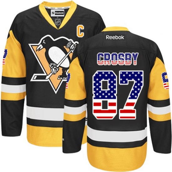 Home>NHL>Pittsburgh Penguins>Sidney Crosby>Men's Reebok Pittsburgh Penguins #87 Sidney Crosby Authentic Black/Gold USA Flag Fashion NHL Jersey