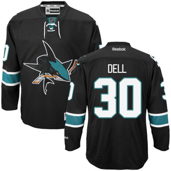 Home>NHL>San Jose Sharks>Aaron Dell>Men's Reebok San Jose Sharks #30 Aaron Dell Authentic Black Third NHL Jersey