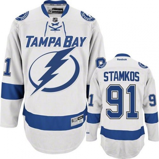 Home>NHL>Tampa Bay Lightning>Steven Stamkos>Men's Reebok Tampa Bay Lightning #91 Steven Stamkos Authentic White Away NHL Jersey