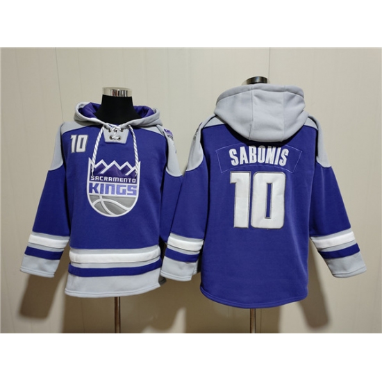 >Men's Sacramento Kings #10 Domantas Sabonis Purple Gray Lace-Up Pullover Hoodie