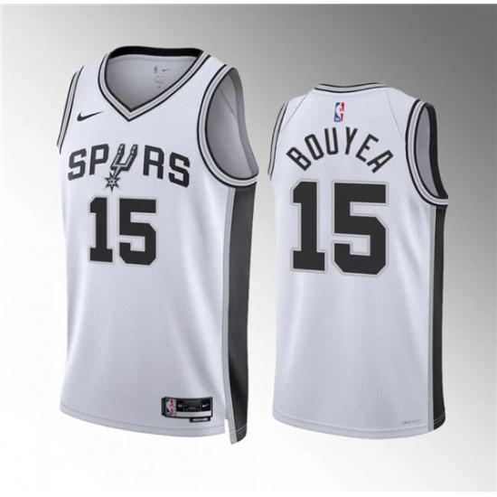 >Men's San Antonio Spurs #15 Jamaree Bouyea White Association Edition Stitched Basketball Jersey