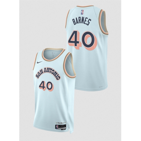 Men's San Antonio Spurs #40 Harrison Barnes Light Blue 2024-25 City Edition Stitched Basketball Jersey