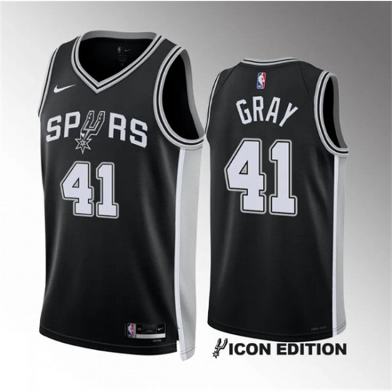 Men's San Antonio Spurs #41 Raiquan Gray Black 2022-23 Icon Edition Stitched Basketball Jersey